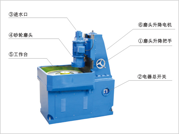 单头金刚石圆台平面磨床,主要有磨头和转盘工作台两部分组成。磨头是由高速运转的电动机带动金刚石砂轮,对工件进行磨削,而转盘工作台不停地递送着工件,从砂轮底下通过,完成磨削的工作。磨削速度快,效率高。 |